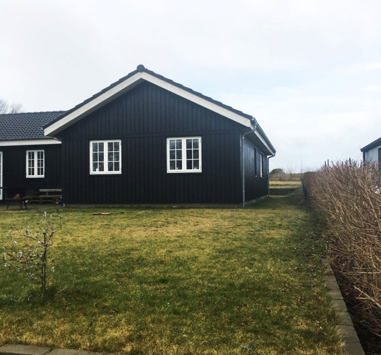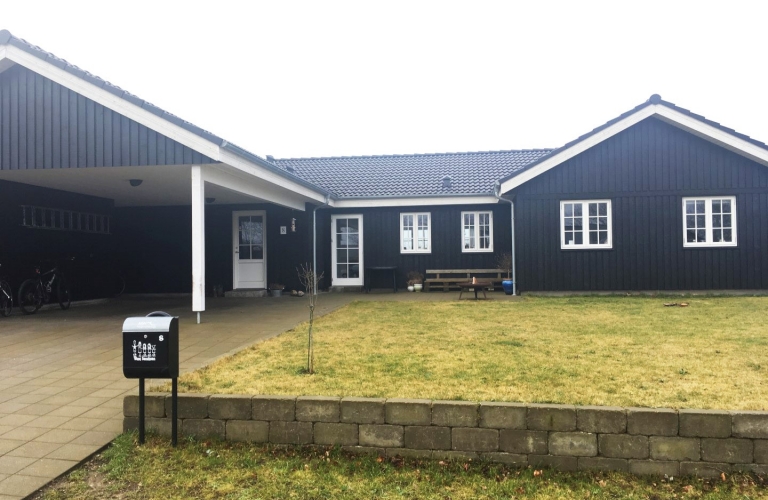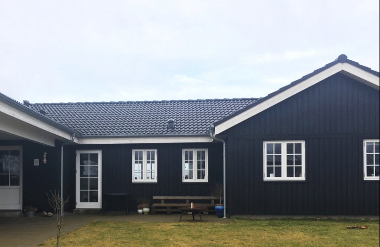 Dansk træhus i stilsikker sort stil.